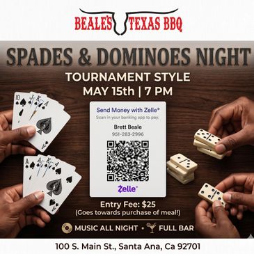 Come enjoy Great food, competitve play and good music. Spades tournament. All around chill vibe.